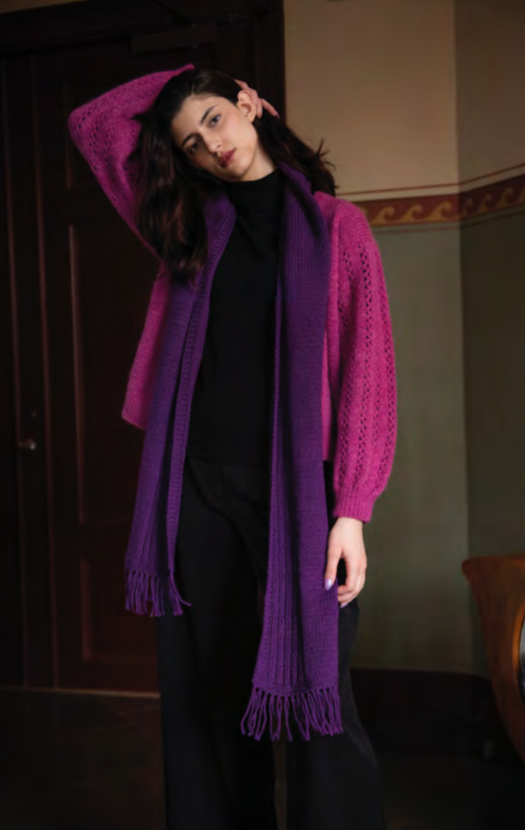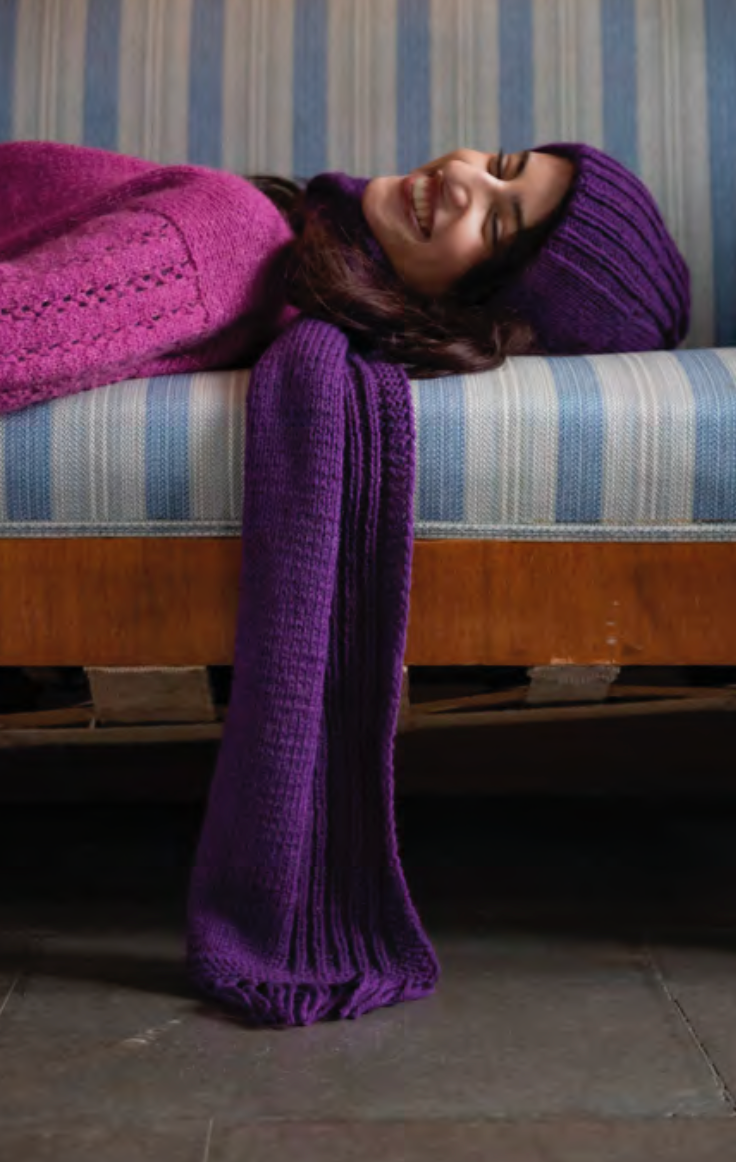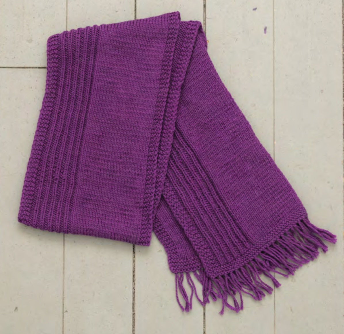 Regi-kaulaliina neulotaan sileänä neuleena ja reunaan neulotaan kaistale joustinneuletta, joka muodostaa kauniin kontrastin. Kaulaliina sopii sekä miehelle että naiselle.